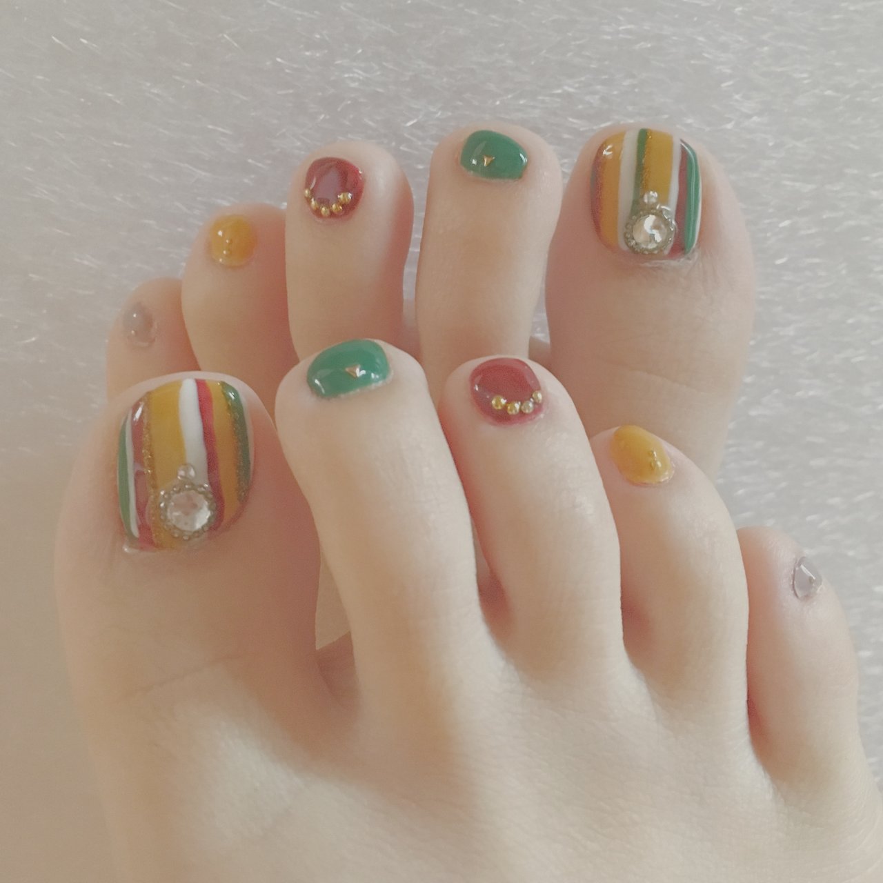 77eiuclが投稿したフォト 初 宝石ネイルです 足元は カラフルな色が好きです 19 01 31 13 38 44 Limia リミア