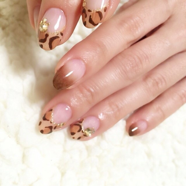 ハンド フレンチ グラデーション アニマル柄 ミディアム 梨花のネイルデザイン No ネイルブック